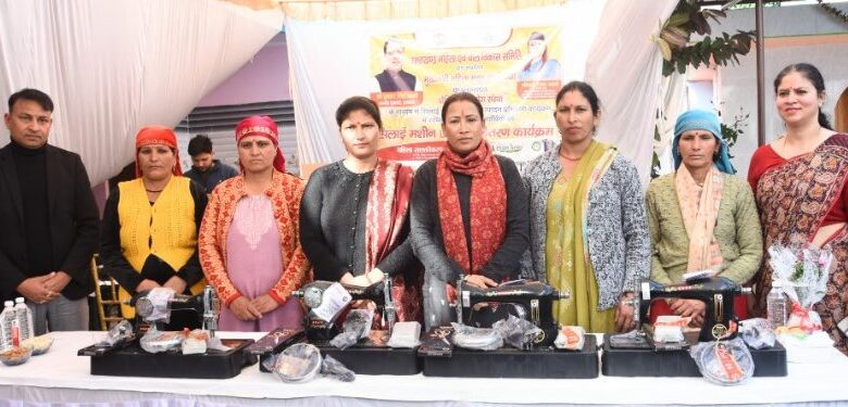 प्रशिक्षित महिलाओं को बांटी सिलाई और जड़ी बूटी उत्पादन किट