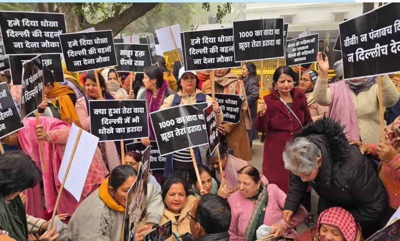 प्रदर्शनकारी महिलाओं में से एक ने एएनआई को बताया कि हम पंजाब के गुरदासपुर से आए हैं। वहां के लोग गरीब हैं, उन्होंने (अरविंद केजरीवाल और भगवंत मान) हर महिला को 1000 रुपये देने का वादा किया था। उन्होंने झूठ बोलकर सरकार बनाई।