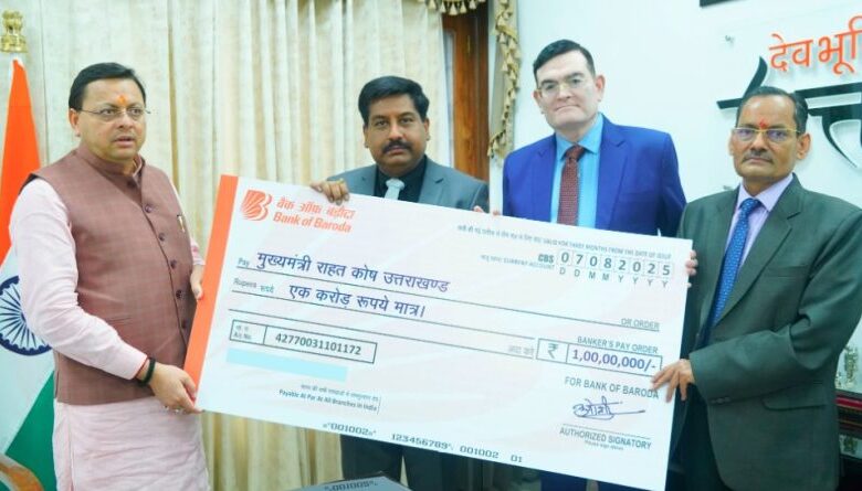 उत्तरकाशी आपदा राहत कार्यों के लिए बैंक ऑफ बड़ौदा ने दिया ₹1 करोड़ की धनराशि का योगदान