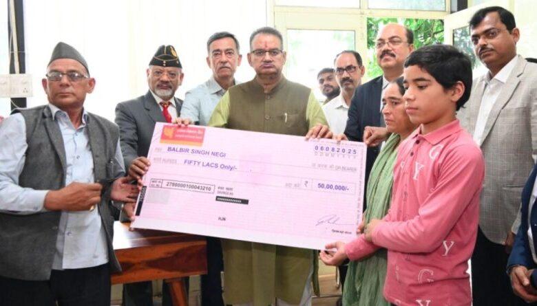 सैनिक कल्याण मंत्री गणेश जोशी ने मृतक उपनलकार्मिक के पिता को सौंपा 50 लाख का चैक